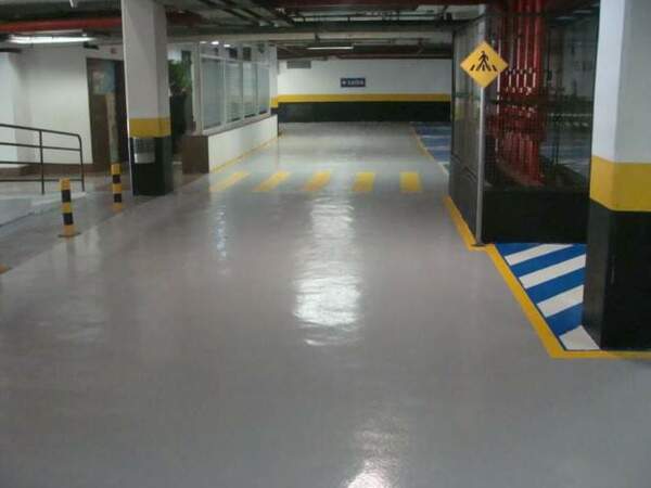 Sistema de Revestimento a base de resina epóxi, 100% sólidos -isento de solventes - espessura média de 3.0mm; Acabamento Liso, Antiderrapante, ou levemente texturado.